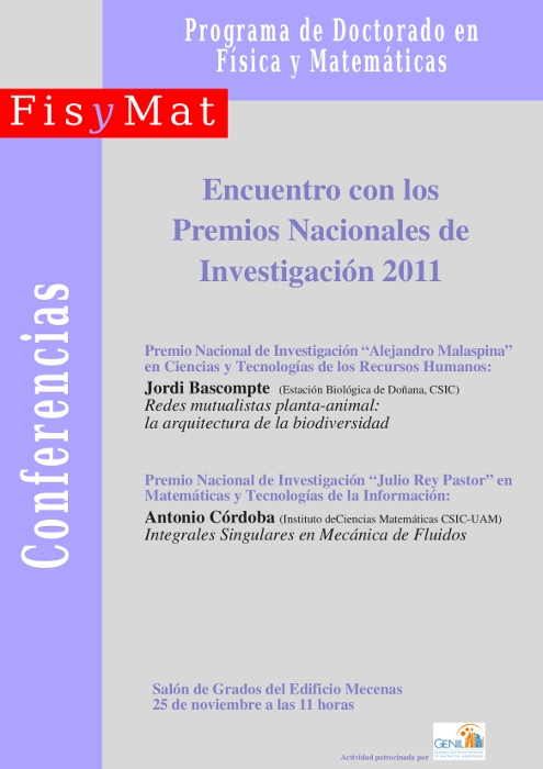 Lugar: Salón de Grados del Edificio Mecenas, Facultad de Ciencias, UGR.