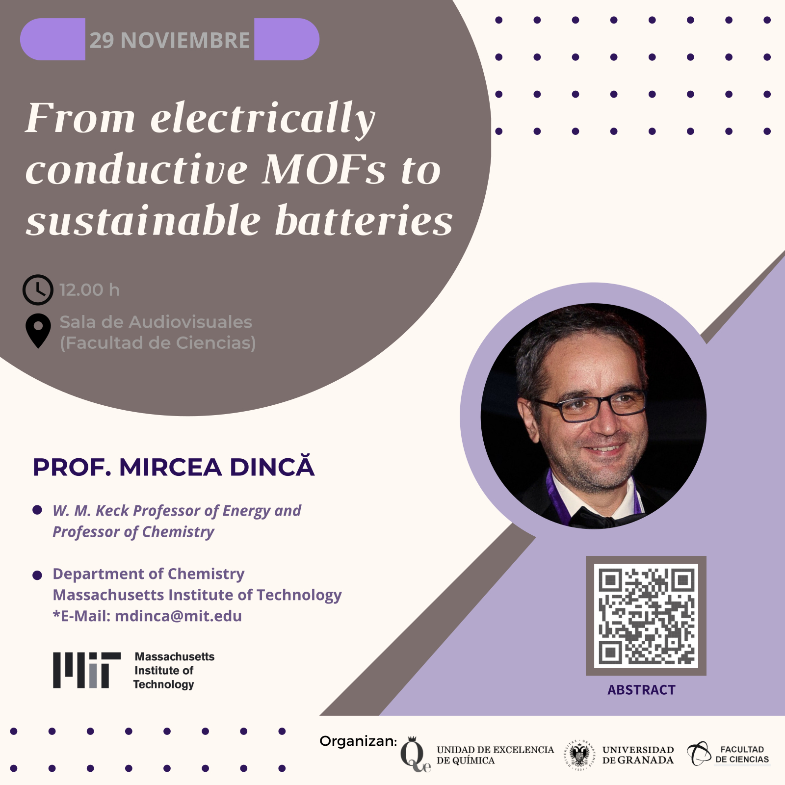 El Equipo de Gobierno convoca a la comunidad universitaria a guardar un minuto de silencio en memoria de las víctimas mortales de la DANA. El acto tendrá lugar el jueves 31 de octubre de 2024, a las 12:00 en las puertas de todos los centros académicos, centros e institutos de investigación y demás centros de trabajo de la Universidad de Granada. En la Facultad de Ciencias nos reuniremos en la puerta del Aula Magna.