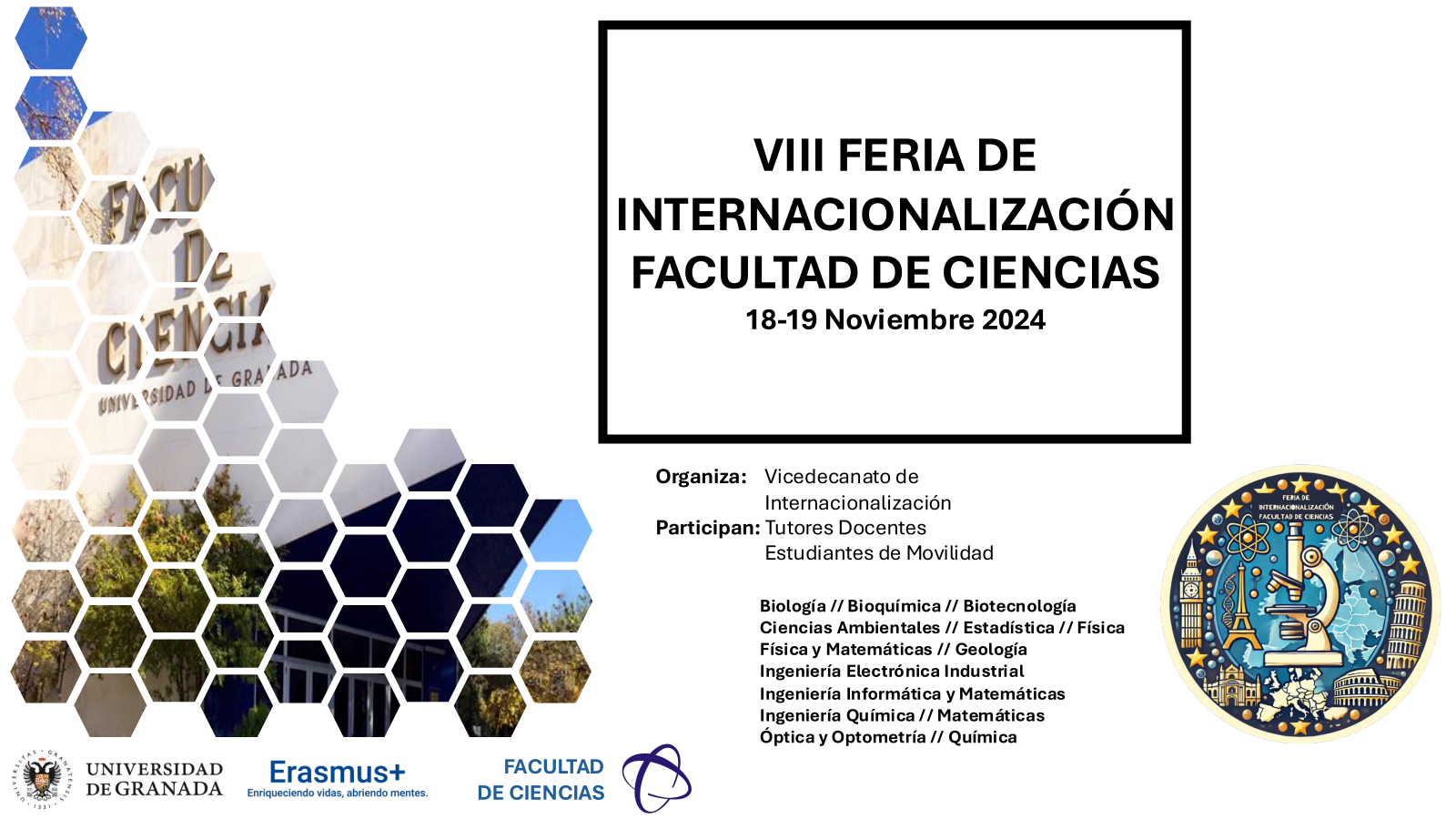 La estrategia de internacionalización de la Facultad de Ciencias de la Universidad de Granada (UGR) prevé la convocatoria del Premio a la excelencia en la movilidad ERASMUS+ de estudiantes de grado de la Facultad de Ciencias de la Universidad de Granada (UGR), dirigido a fomentar la calidad de la movilidad.