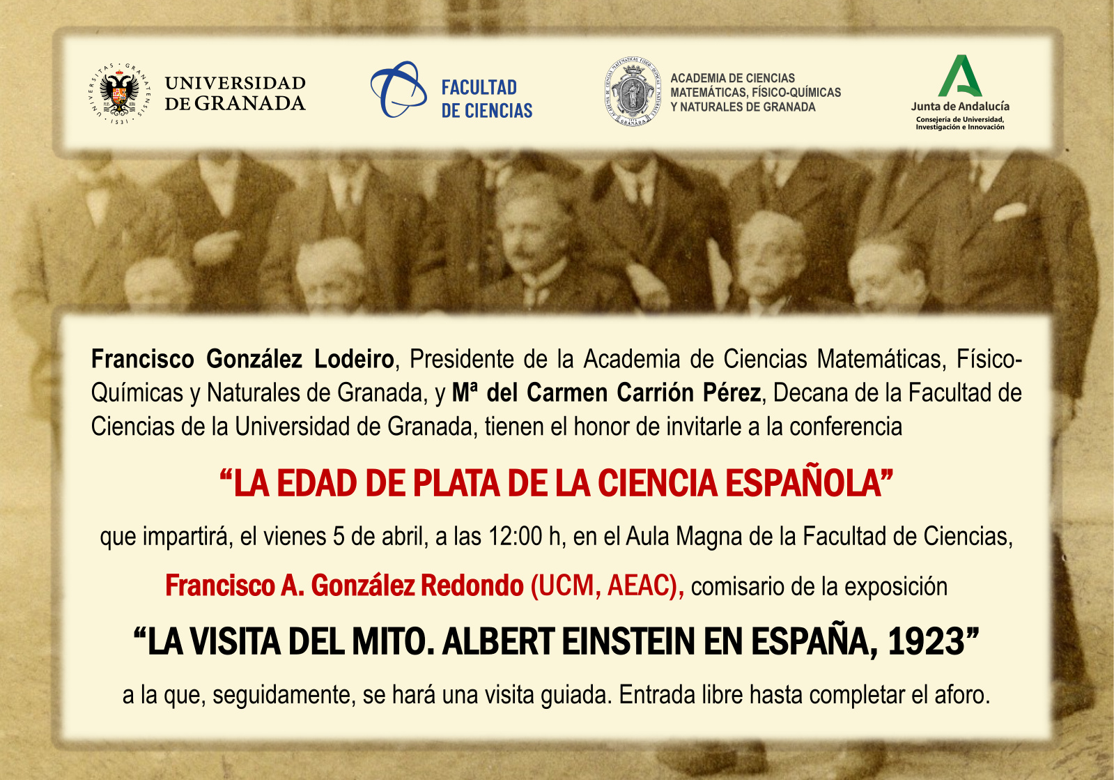 Ponente: Francisco A. González Redondo (UCM, AEAC), comisario de la Exposición "La visita del mito. Albert Einstein en España, 1923”.