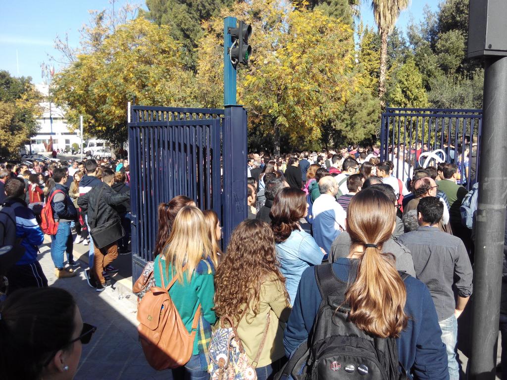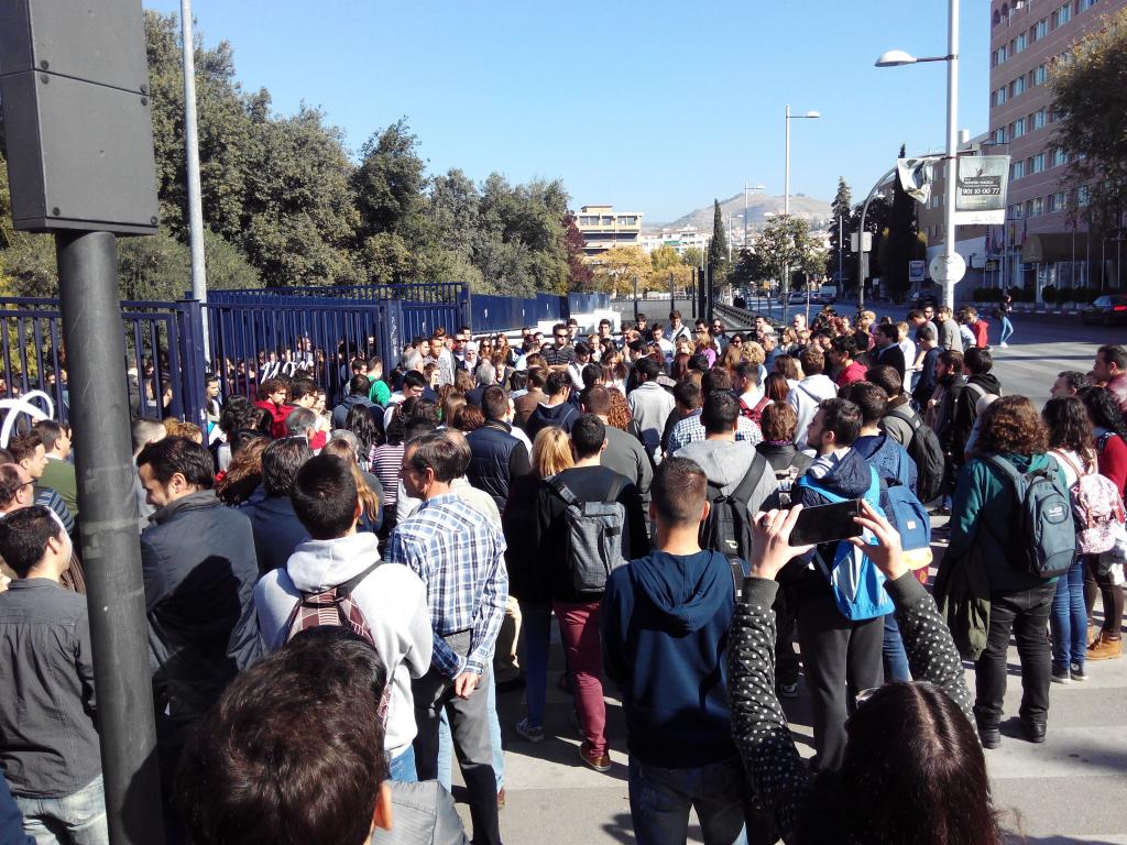 La rectora de la Universidad de Granada convocó a toda la comunidad universitaria granadina a manifestarse silenciosamente el pasado lunes 16 de Noviembre a las 12:00h. (5 min) en las puertas de los centros universitarios, en rechazo a los atentados de París del 13 Nov.