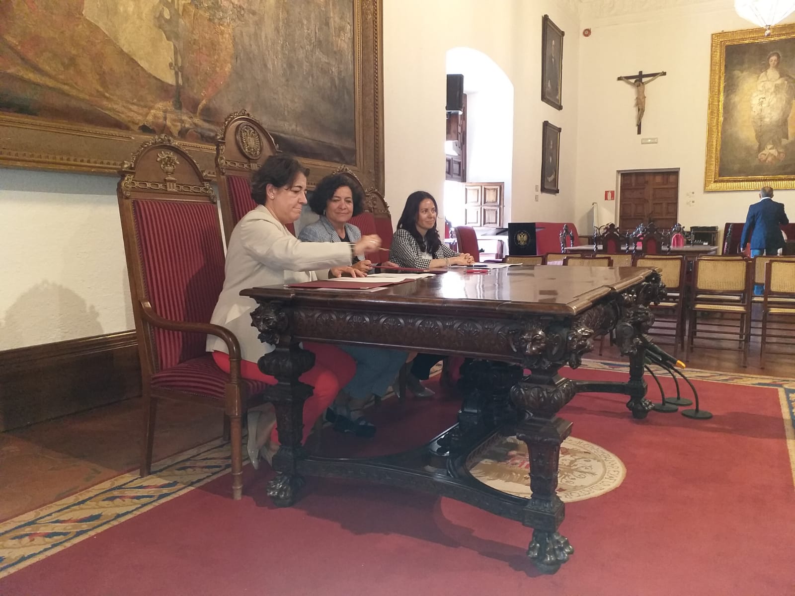A la firma del convenio han asistido la rectora de la Universidad de Granada Pilar Aranda; la presidenta de Hispasat, Elena Pisonero, y la subdirectora del Centro Mediterráneo de la UGR y coordinadora del comité organizador local del Programa de Estudios Espaciales SSP21, Vanessa Martos.