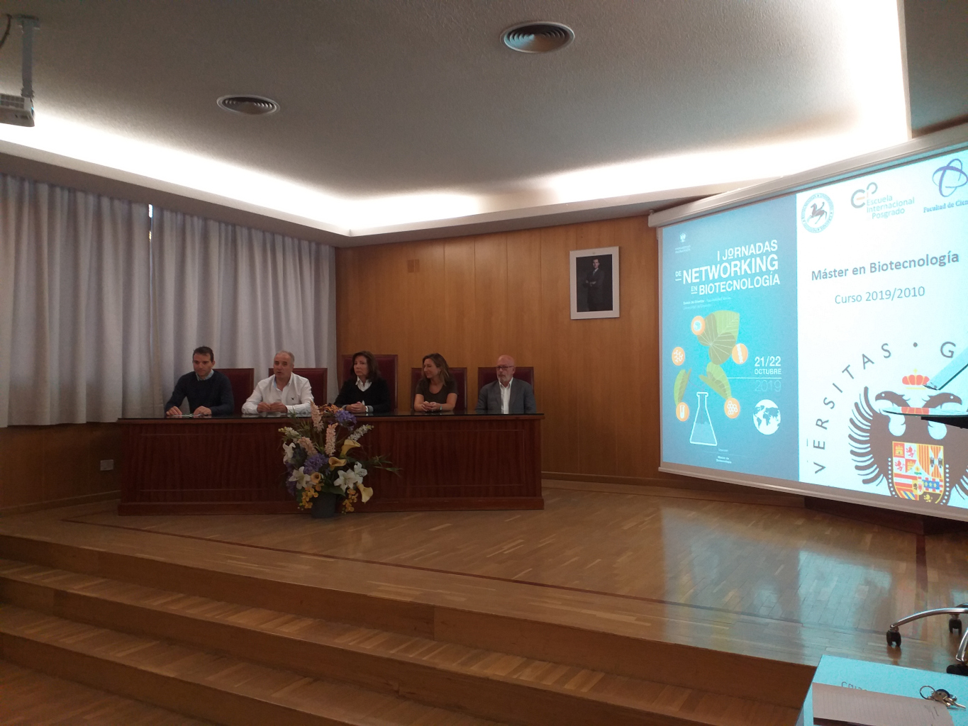 Se están celebrando las I Jornadas de Networking en Biotecnología en el Salón de Grados de la Facultad de Ciencias. Están organizadas por el Master de Biotecnología y participan más de 30 investigadores de la UGR y del CSIC. Las Jornadas han sido inauguradas por la Sra. Decana de la Facultad de Ciencias en presencia del Vicedecano de Investigación y Divulgación de la Facultad de Ciencias, del Director del Instituto de Biotecnología y de los coordinadores del Máster en Biotecnología.